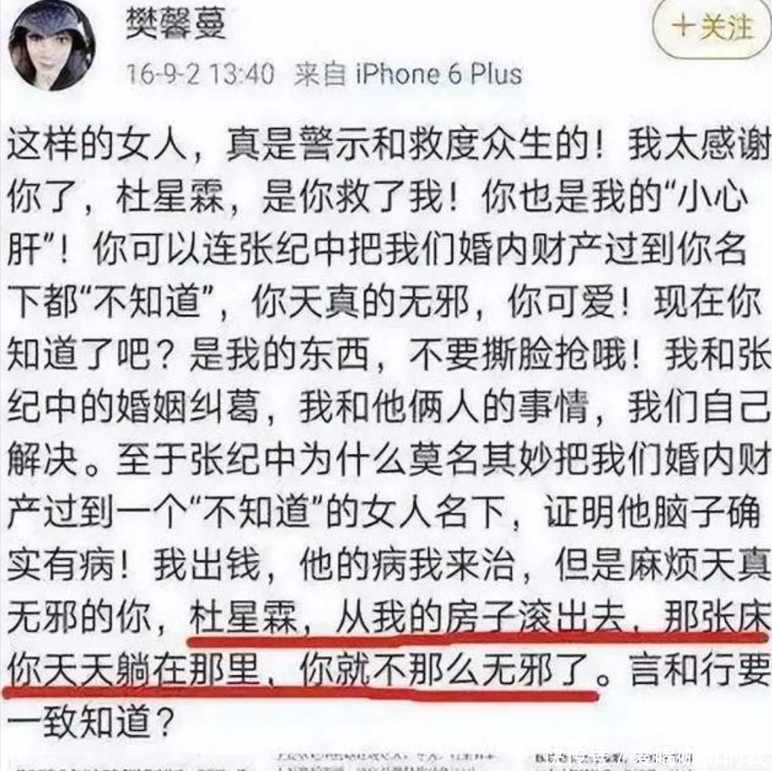 张纪中这辈子最大的“败笔”,不是拍了哪部烂片,或许是在婚姻里选错了人。前妻反目成仇时间倒回到2016年,那年张纪中和前妻樊馨蔓结束了近20年的婚姻。表面上是和平协议离婚,实际上早就埋下了重重隐患。在樊馨蔓的说法里,这场婚姻最后的分手,是因为她发现张纪中有“小三”,而她口中的“小三”就是张纪中现任妻子杜星霖。
